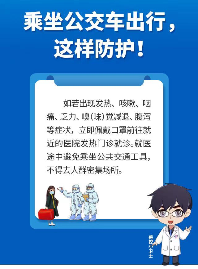 公交車是市民出行的重要公共交通工具,濟南市疾控中心提醒市民,在乘坐公交車出行時,應配合公交部門采取的疫情防控措施,全程規(guī)范佩戴口罩。還要做好以下幾點防護: